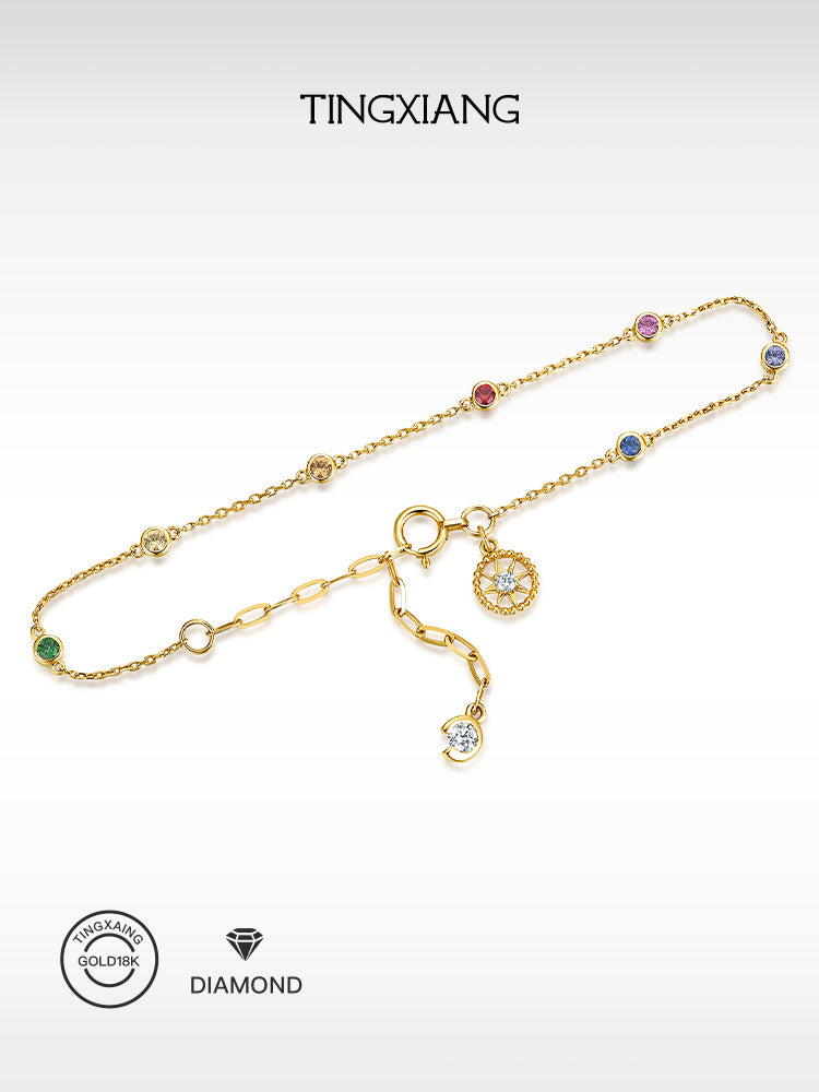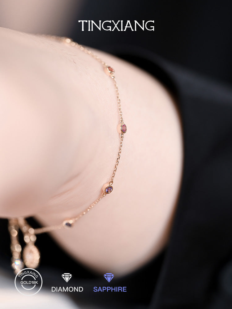 「听香」| 彩虹手链|太阳18k金泡泡钻石蓝宝石手链治愈系小众原创