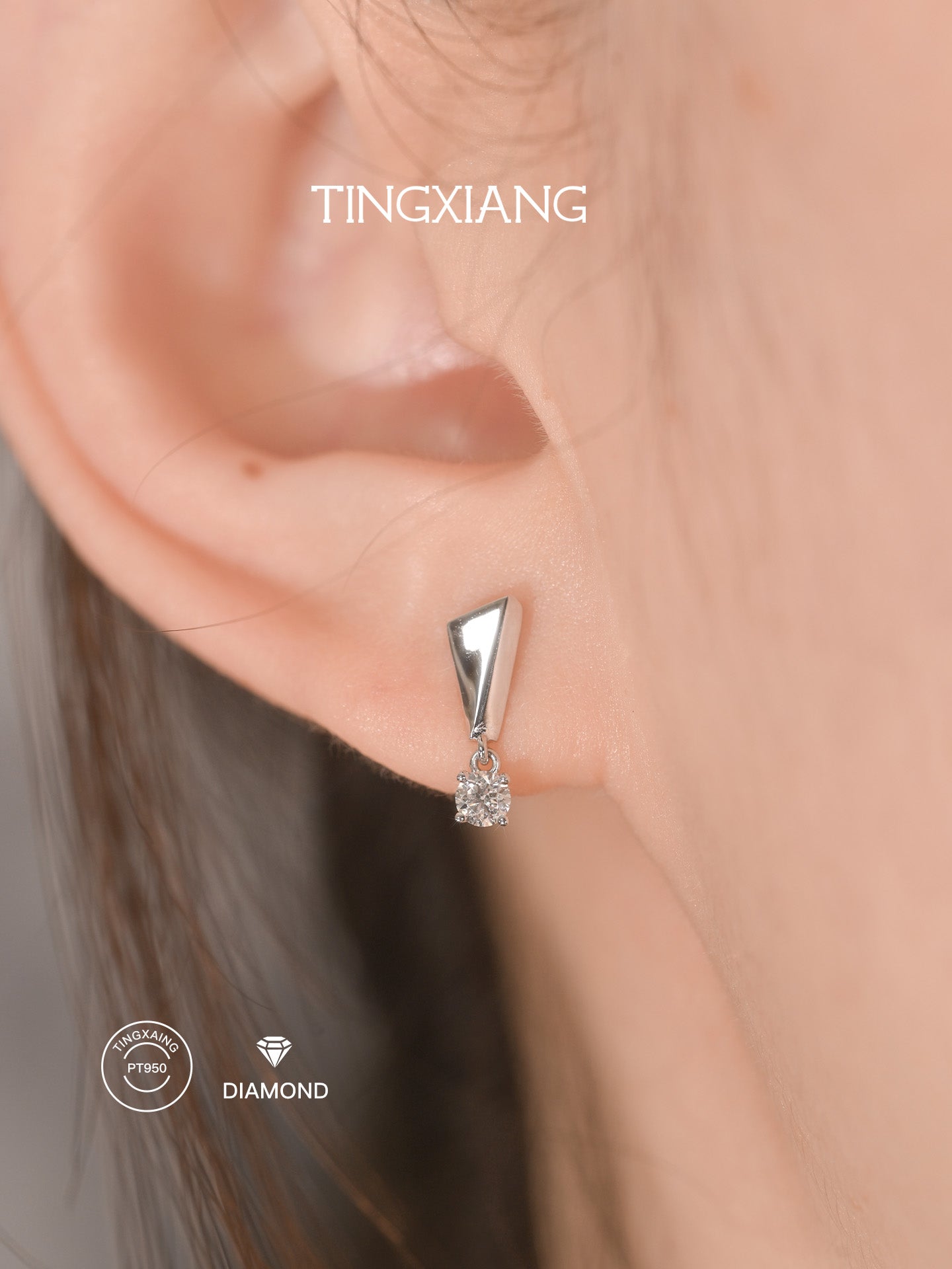 「听香」|标点符号|pt950铂金钻石迷你耳钉逗号句号问号感叹号